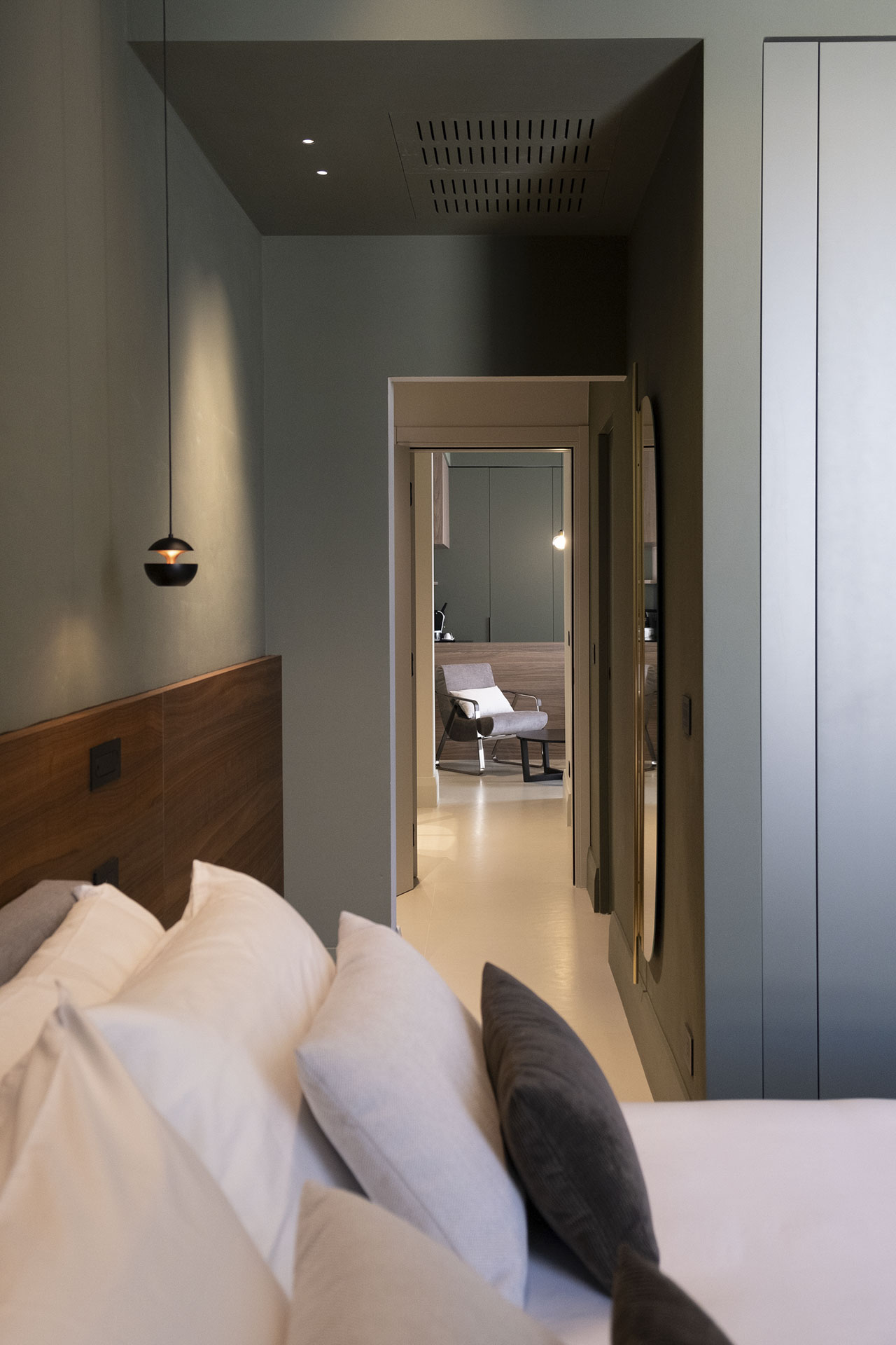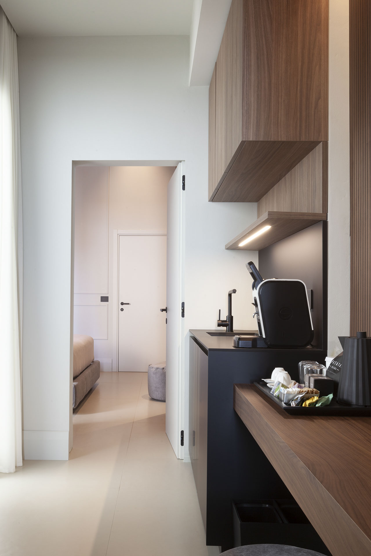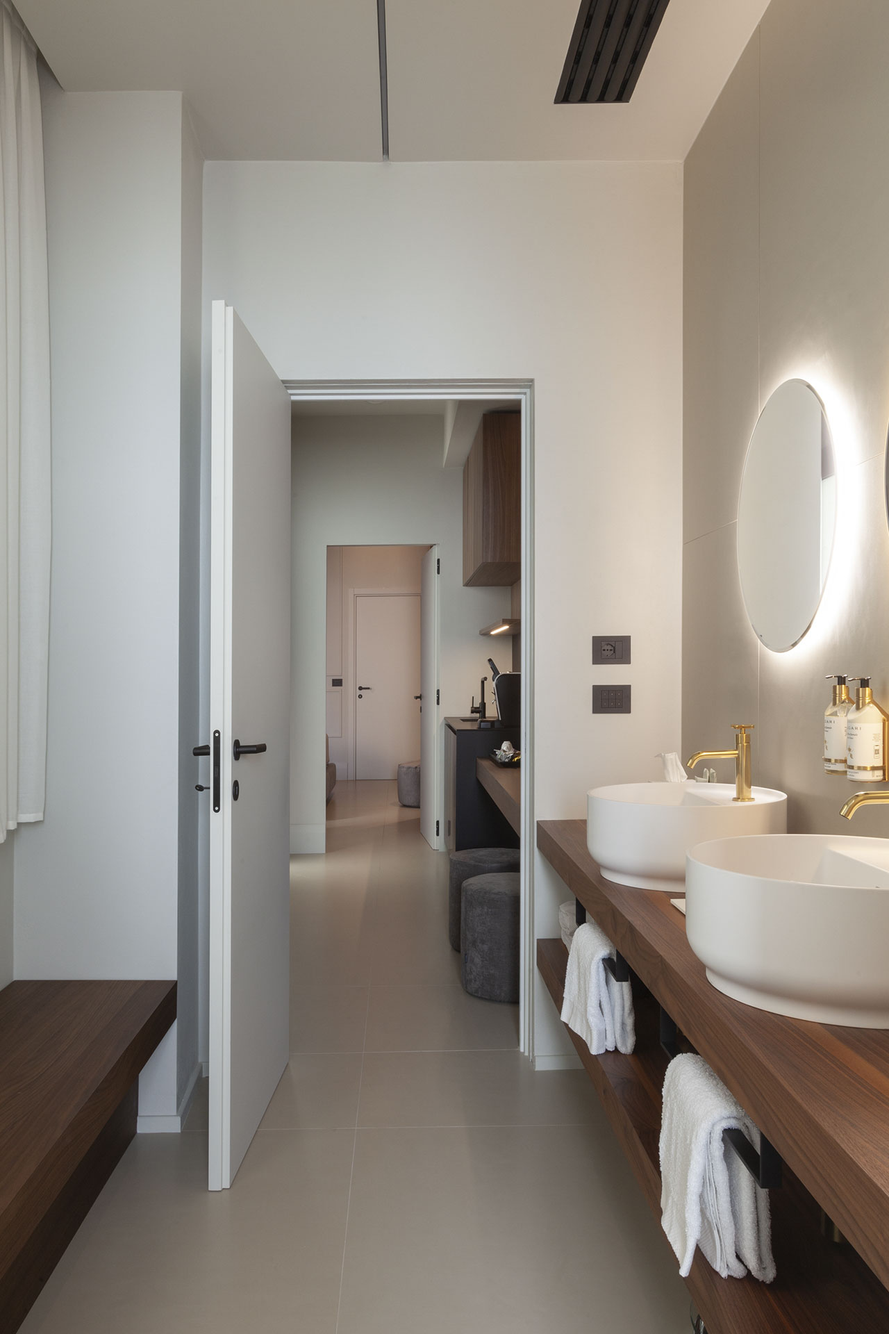 Le camere di Palazzo Giusti Lecce hanno un carattere unico grazie al design leggero e ai colori decisi che le definiscono. I pavimenti in ceramica, i rivestimenti in legno e il legno che compongono ogni suite e che definiscono il concept del nuovo edificio offrono un ambiente moderno, accogliente e rilassante e sono superbamente combinati con arredi dal carattere unico, definendo il concept con estro ed eleganza.